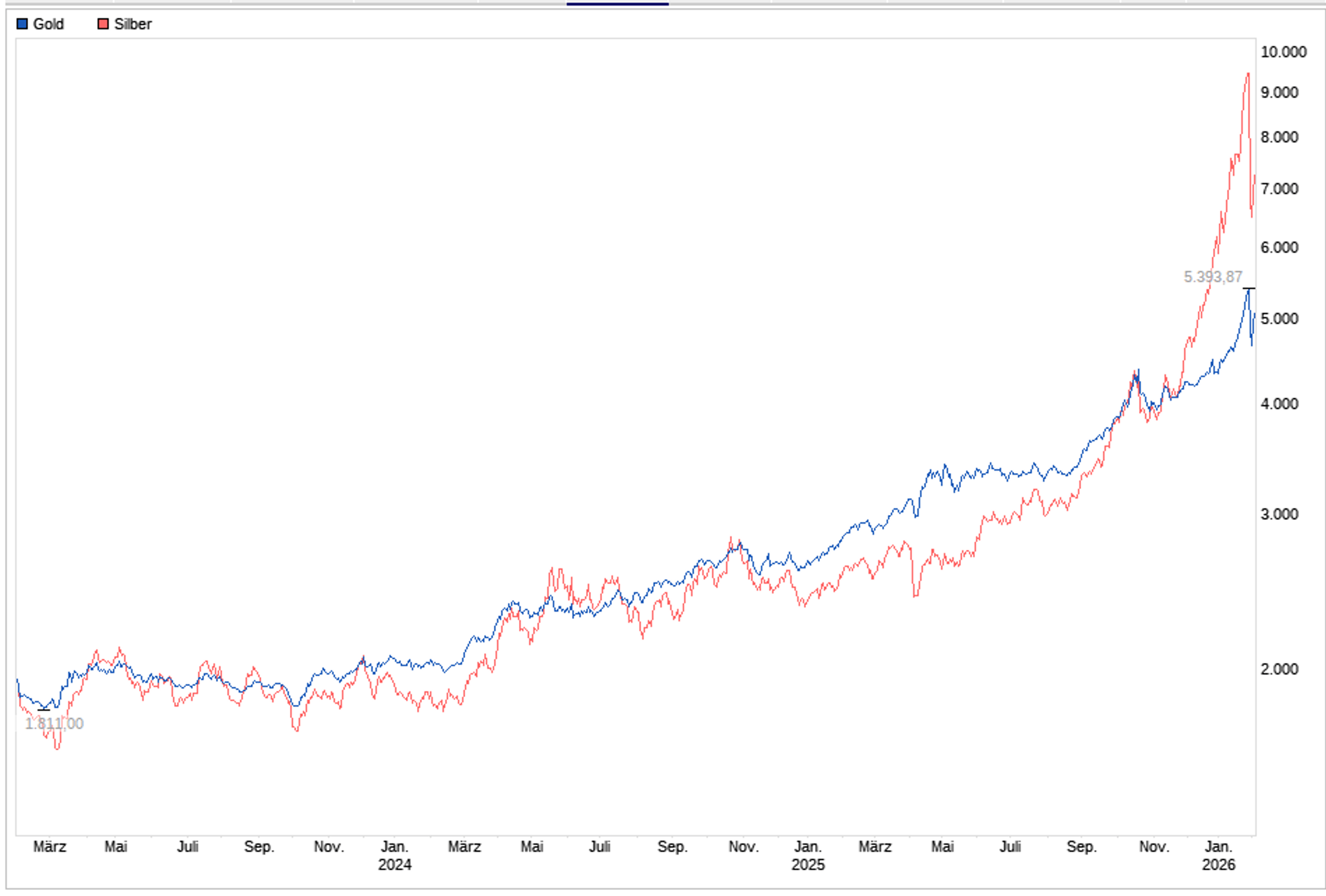 KI? Der Hype scheint für den Moment vorbei. Kryptowährungen? Nach ca. -40% in kurzer Zeit fragwürdig. Und auch bei Edelmetallen fand die Begeisterung nach geradezu traumwandlerischen Gewinnen ein jähes Ende. Das Narrativ vieler marktschreierischer Verkäufer, Gold sei eine narrensichere Anlage und es gehe einfach immer weiter und nur nach oben, hat ein paar ernsthafte Risse bekommen.